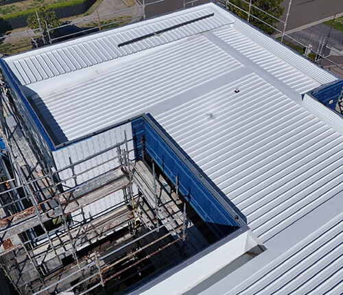 02Further, reflective coatings are applied to the metal roofing to decrease heat absorption, thus keeping the building cooler and saving on energy bills.